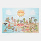 A spectacular cartoon map of Southern California – showcasing Los Angeles, Anaheim, Long Beach, San Diego and other cities. This whimsical design is full of fun – a surfer hangs ten while a mermaid lounges on a rock, a killer whale leaps out of the water, all beneath the warm California sun shining high above it all.