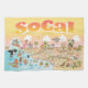 A spectacular cartoon of Southern California – showcasing Los Angeles, Anaheim, Long Beach and San Diego and hundreds more. This bright and charming scene has it all – a surfer hangs ten while a mermaid lounges on a rock, a killer whale leaps out of the water, a muscular beach couple both flex to impress, zoo animals wait for tourists and a bull smashes into a bull fighter and much more…