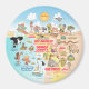 Bright and colorful scene offers a spectacular view of Southern California - wacky characters frolic on the beach and desert of SoCal showcasing Los Angeles, San Diego, Orange County, Santa Barbara, Riverside, Palm Springs, Anza Borrego and Joshua Tree parks as well as the border cities of Tijuana, Tecate and Mexicali. This charming scene has it all – a surfer hangs ten while a killer whale leaps out of the water, zoo animals greet the tourists, a muscular beach couple both flex to impress as a T-Rex roars a challenge and a tank moves into position and much more…