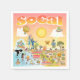 Bright and colorful scene offers a spectacular view of Southern California - wacky characters frolic on the beach and desert of SoCal showcasing Los Angeles, Orange County, San Diego, Santa Barbara, Riverside, Palm Springs, El Centro, Salton Sea, Anza Borrego and Joshua Tree parks as well as the border cities of Tijuana, Tecate and Mexicali. This charming scene has it all – a surfer hangs ten while a killer whale leaps out of the water, zoo animals greet the tourists, wine lovers make a toast as a hiker is noticed by a UFO and much more…