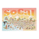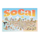 A spectacular cartoon of Southern California – showcasing Los Angeles, Anaheim, Long Beach and San Diego and hundreds more. This bright and charming scene has it all – a surfer hangs ten while a mermaid lounges on a rock, a killer whale leaps out of the water, a muscular beach couple both flex to impress, zoo animals wait for tourists and a bull smashes into a bull fighter and much more…