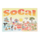 Bright and colorful scene offers a spectacular view of Southern California - wacky characters frolic on the beach and desert of SoCal showcasing Los Angeles, Santa Barbara, San Diego, Riverside, Palm Springs, Anaheim, Anza Borrego and Joshua Tree parks as well as the border cities of Tijuana, Tecate and Mexicali. This charming scene has it all – a surfer hangs ten while a killer whale leaps out of the water, zoo animals greet the tourists, a muscular beach couple both flex to impress as a T-Rex roars a challenge and much more…