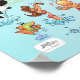 Bright and colorful scene offers a spectacular view of Southern California - wacky characters frolic on the beach and desert of SoCal showcasing Los Angeles, San Diego, Orange County, Santa Barbara, Riverside, Palm Springs, Anza Borrego and Joshua Tree parks as well as the border cities of Tijuana, Tecate and Mexicali. This charming scene has it all – a surfer hangs ten while a killer whale leaps out of the water, zoo animals greet the tourists, a muscular beach couple both flex to impress as a T-Rex roars a challenge and a tank moves into position and much more…