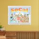 Bright and colorful scene offers a spectacular view of Southern California - wacky characters frolic on the beach and desert of SoCal showcasing Los Angeles, Orange County, San Diego, Santa Barbara, Riverside, Palm Springs, El Centro, Anza Borrego and Joshua Tree parks as well as the border cities of Tijuana, Tecate and Mexicali. This charming scene has it all – a surfer hangs ten while a killer whale leaps out of the water, zoo animals greet the tourists, a muscular beach couple both flex to impress as a T-Rex roars a challenge and a tank moves into position and much more…