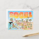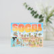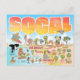 Bright and colorful scene offers a spectacular view of Southern California - wacky characters frolic on the beach and desert of SoCal showcasing Los Angeles, San Diego, Riverside, Palm Springs, Anaheim, Anza Borrego and Joshua Tree parks as well as the border cities of Tijuana, Tecate and Mexicali. This charming scene has it all – a surfer hangs ten while a mermaid lounges on a rock, a killer whale leaps out of the water, zoo animals greet the tourists, a muscular beach couple both flex to impress as a T-Rex roars a challenge and a tank moves into position and much more…