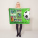 Create your own personalized photo blanket for a soccer player, coach, parent or family member with 7 pictures. The design features and easy-to-use photo collage template, a soccer ball in the net and a green soccer field background and personalized with your custom text. OPTIONS: The sample is shown in the SMALL 30x40" fleece blanket--other sizes are available on the ordering page or you can transfer to a Sherpa blanket, throw blanket or another product. ASSISTANCE: For help with design modification/personalization or transferring the design to another product, contact the designer BEFORE ORDERING via Zazzle Chat or makeitaboutyoustore@gmail.com.