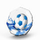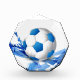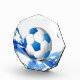 Acrylic award is shown in the octagonal shape and has a sports soccer ball.