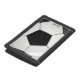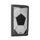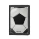 Handsome black wallet, with graphics of a black and white soccer ball pattern, on the front flap. Personalize the black text to suit your needs. Makes a great gift for guys.