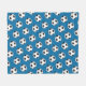 Fleece blanket shown in a color of Blue with a sports soccer ball print.