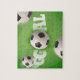 Soccer balls (footballs) in motion on a green background with white lettering "GOAL".