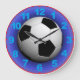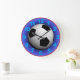 Great artwork and photography give thus clock the optical illusion of a soccer ball having been kicked or thrown into the clock itself. With bright blue numbers and red minute markers, this clock is ready for the soccer enthusiast!