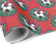 Soccer Ball in Wreath Pattern on Red Wrapping Paper