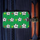 Soccer Ball Luggage Tag designed by Nisha Prabhu. This soccer ball themed luggage tag is just what you need to express your love for soccer. The design features a large soccer balls with red and yellow flags on green background. Sports gifts for soccer coach, soccer team, soccer fans, soccer player, soccer lover.