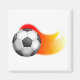 Colourful illustration of a soccer ball flying through the air with a trail of heat or flames of fire being left in it's wake. Image available on various gifts and products.