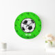 Soccer Ball; Neon Green Stripes Large Clock