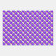This Christmas wrapping paper features soccer balls wearing Santa's hat with snowflakes twirling around on a Christmas purple, green and blue background.