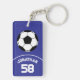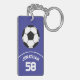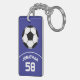 Soccer Ball with Name and Jersey Number Blue Keychain