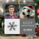 Soccer Ball with Santa Hat Snowflake Photo Ceramic Ornament