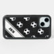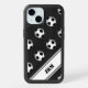 This sports themed Otterbox phone case is ready for your monogram. Created in a black and white patterned background of soccer balls, Choose from a variety of sizes for Google, iPhone and Samsung phones in the drop down menu..