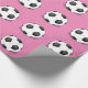 Image of soccer balls on a pink background. Custom wrapping paper rolls for sports fans.
