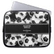 This soccer themed laptop sleeve features a bunch of varied size soccer balls arranged in a random, 3-dimensional-look pattern - customize the coach's name, team's name and sports season/year - by katz _d_zynes