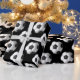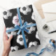 It's a classic roll of soccer balls wrapping paper. Featuring soccer balls in a diagonal pattern against a black background. Perfect for a gift for the soccer player or enthusiast in your life! Choose from different paper styles and roll sizes, and grab a roll today.