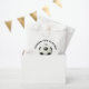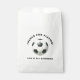 Editable soccer birthday favor bag for boys. Customize name and age. Bold black and white sporty design with soccer ball graphic. Part of the Soccer Star Birthday Boy matching party collection on Zazzle.