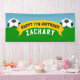 Kick up some fun for your little soccer player's birthday with the Soccer Birthday Party Party Banner designed by Enchantfancy Design Company. This birthday banner features a soccer ball sitting in a grassy soccer field. It will add a fun and unique touch to your kids soccer party decor.