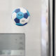 This is a photograph of an actual soccer ball which gives a realistic look to the magnet. The player's name and number are totally customizable. They can be changed by name, number, font style, color, size and location.