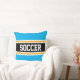 SOCCER Bright Sky Blue Black Orange Racing Stripes Throw Pillow