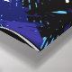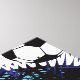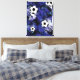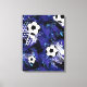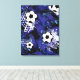 This stretched canvas wall art is shown with a colorful blue multi color soccer ball art print.