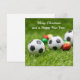 Soccer Christmas Card with ball on green grass