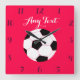 Soccer Clock: Red Custom Square Wall Clock