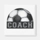 Soccer Coach features our original Soccer Ball painting with the word coach beneath in a color coordinated background cutting off the bottom of the ball. Makes a great gift for the coach of your team or your kid's Soccer team. Coaches are your biggest fan, show them your appreciation with a gift just for them.
