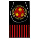 A bold athletic design in rich red and gold tones with laurel accents and star motifs delivers a classic emblem-style look. The high-contrast graphic conveys team spirit and achievement, and offers a customizable space for names or messages. This design makes a thoughtful personalized gift for soccer players, coaches, or devoted fans for occasions like season celebrations, team milestones, birthdays, or end-of-year awards.