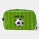 Soccer Design Dopp Kit Bag with customizable background color and text. Other bag options available in drop-down menu.