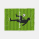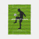 Soccer Design Fleece Blanket featuring the silhouettes of a player against a soccer field background with customizable personalization.