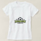 Sports fan tees with soccer ball design and light green banner ribbon with year and "Soccer" printed in white, Add player's or team name. Colors are customizable
