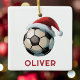 Soccer Football Ball Red Santa Hat Name Christmas Ceramic Ornament