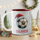 Soccer Football Ball Red Santa Hat Name Christmas Two-Tone Coffee Mug
