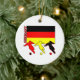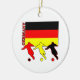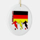 Three German soccer players in silhouette play in front of the German flag. Country name German is on the side