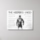 Inspire your favorite goalkeeper with The Keeper's Creed canvas print featuring a hand-drawn soccer keeper illustration surrounded by powerful motivational sayings. The jersey is customizable with the player's last name and number, making it a meaningful monogram keepsake for any soccer goalie. Clean white background with vintage-style typography is perfect for a teen bedroom, game room, or athlete's space. All text is fully customizable.