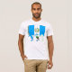 Three soccer players play in front of the Guatemalan flag. Country name Guatemala is on the side