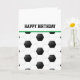 Happy Birthday Soccer Card in Black, White, Green Trim on White background. Happy Birthday text on front, Message inside. Can personalize both areas easily, changing text, text color. Fun surprise for your favorite soccer players. Mix and match entire Sports Collections by TMCdesigns.