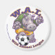 Wild Animal League Hippo Magnets brought to you by Imagine That Design feature a fun and whimsical hippo wearing a soccer uniform and kicking a soccer ball surrounded top and bottom by the WAL logo. Hippo lovers and soccer lovers join the Wild Animal League and buy an Hippo Soccer Star today. Don't just put a WAL Soccer Hippo Magnet on your fridge, wear a WAL Soccer Hippo Star T-shirt, and a WAL Soccer Hippo Star Apron or drink from a WAL Soccer Hippo mug and more! Go wild and collect the entire set of Wild Animal League Magnets-- Baseball Elephant, Basketball Giraffe and Soccer Hippo.