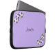 This laptop computer sleeve is decorated with a large purple and white soccer ball on a light purple background, and personalized with name or other text. It's easy to modify or delete example text. What a wonderful way to protect your laptop. Wonderful gift for soccer players, fans, or coaches. All Rights Reserved © 2014 Alan & Marcia Socolik.