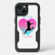 Beautiful Soccer girl cell phone case. Has a faux sparkle ombre heart with a silhouette of a girl playing soccer over it. Says soccer above the heart and is personalized with the name of your child along the bottom of the design!