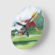 Soccer Player Kicking a Ball by Jay Throckmorton Round Clock