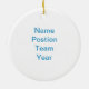 Lightweight, smooth, pure white ornament with nice sheen. Perfect size to be seen from across the room ... and to attract closer inspection! Price was great for ordering enough for the whole family! Clear, bold black design just as requested. Matches the order exactly. Just so nice!