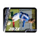 Celebrate your favorite soccer player with our customizable soccer player magnet. This magnet features a sleek black frame with striking blue and white design elements, making it a standout addition to any collection. In the top right corner, the player's uniform number is prominently displayed in bold white san-serif font against a blue stripe, while the bottom right corner showcases the year, both of which are fully customizable. The bottom of the magnet features three eye-catching stripes—white, blue, and black. The top white stripe is perfect for the team name in a dynamic black font, the middle blue stripe highlights the player’s name in white, and the bottom white stripe displays the player’s position in white. All these design elements surround a central player image that you can replace with one of your choosing, adding a personal touch to the magnet.
